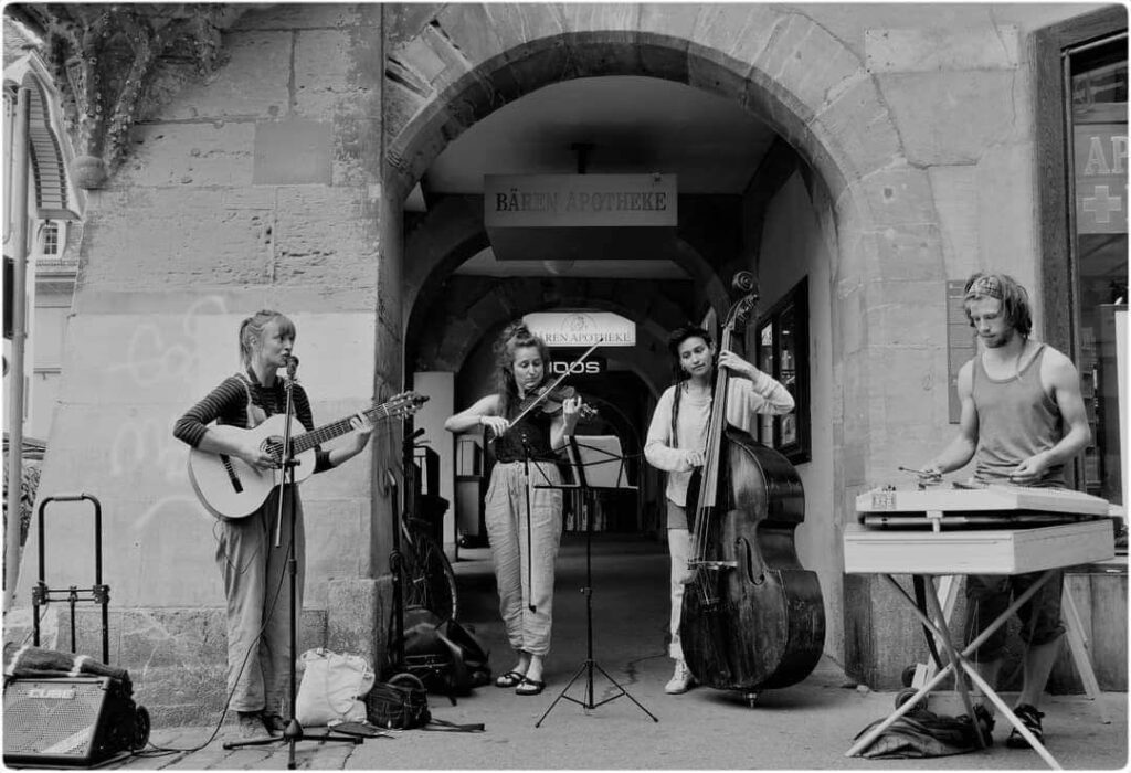 The violin is both Andrina’s passion and favorite means of expression. With a degree in classical music from the Bern University of the Arts, she puts her talent to work in new musical horizons. She is a member of the duo Desdëa, Duo Aluna, Ensemble Das seltene Orchester and the collective Kandáleko.